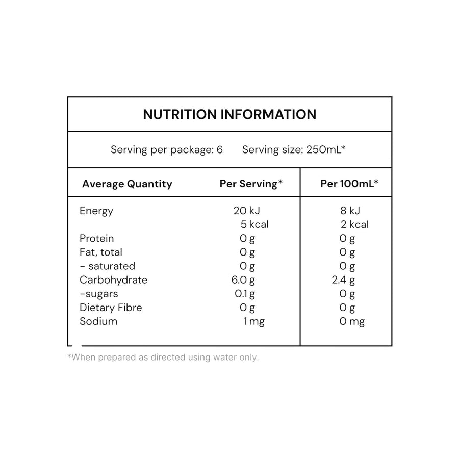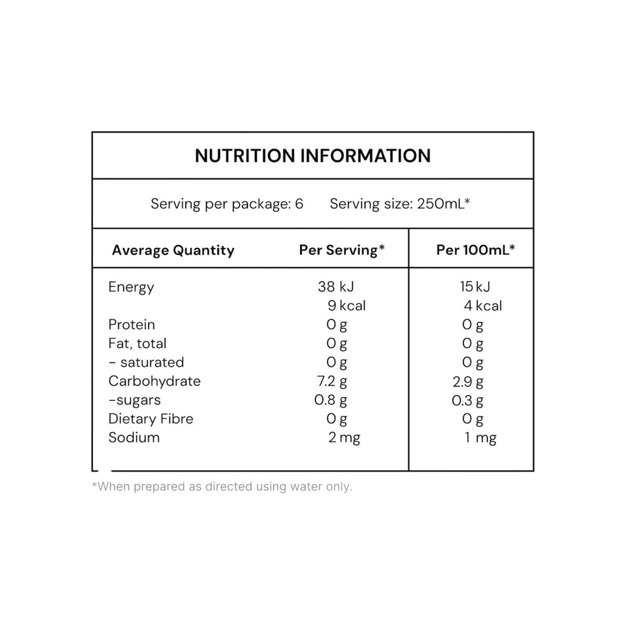 • 0g of sugar per 100mL