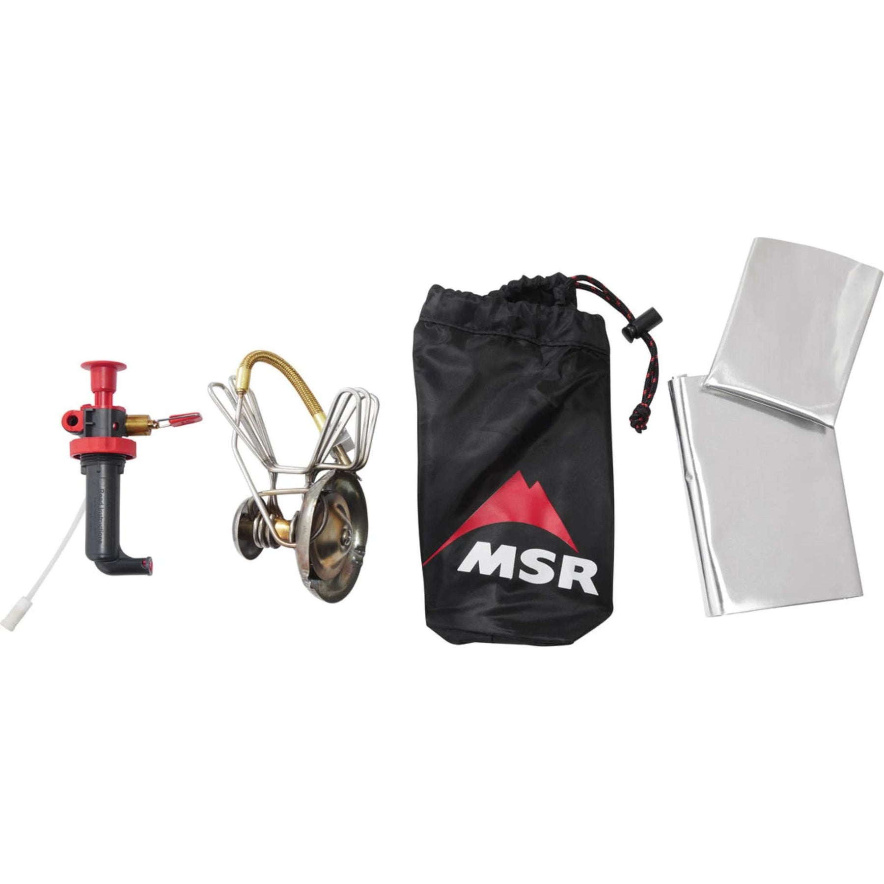 Includes: Fuel pump, windscreen, heat reflector, small-parts kit, instructions, and stuff sack. (Fuel bottle not included.)